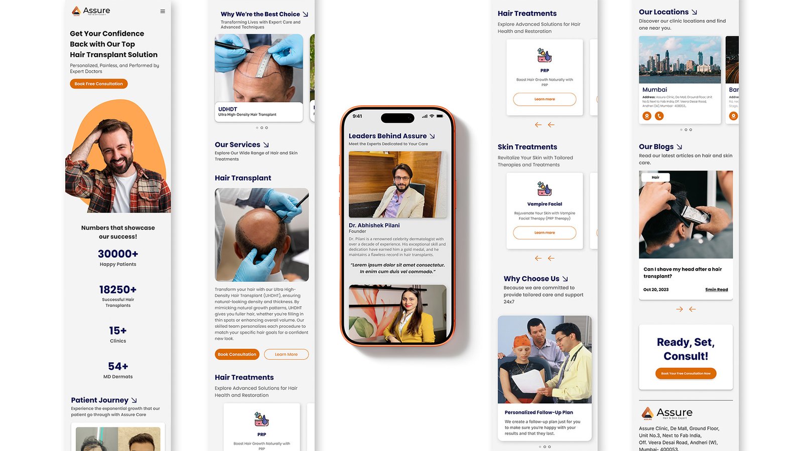 With over 20,000+ successful hair transplants, 60+ MD dermatologists, and 100% doctor-led procedures, Assure has built its reputation on medical credibility, precision, and long-term results. The website needed to reflect that authority while remaining approachable and easy to navigate.